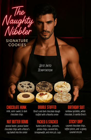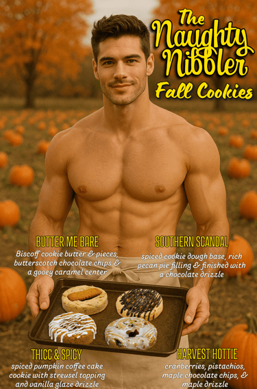 Fall’s never tasted this hot. The Naughty Nibbler’s seasonal lineup brings bold flavor, buttery indulgence, and a touch of scandal to every bite. From maple-drizzled temptations to spiced-up seductions, each cookie is handcrafted to warm your heart… and maybe a few other places.